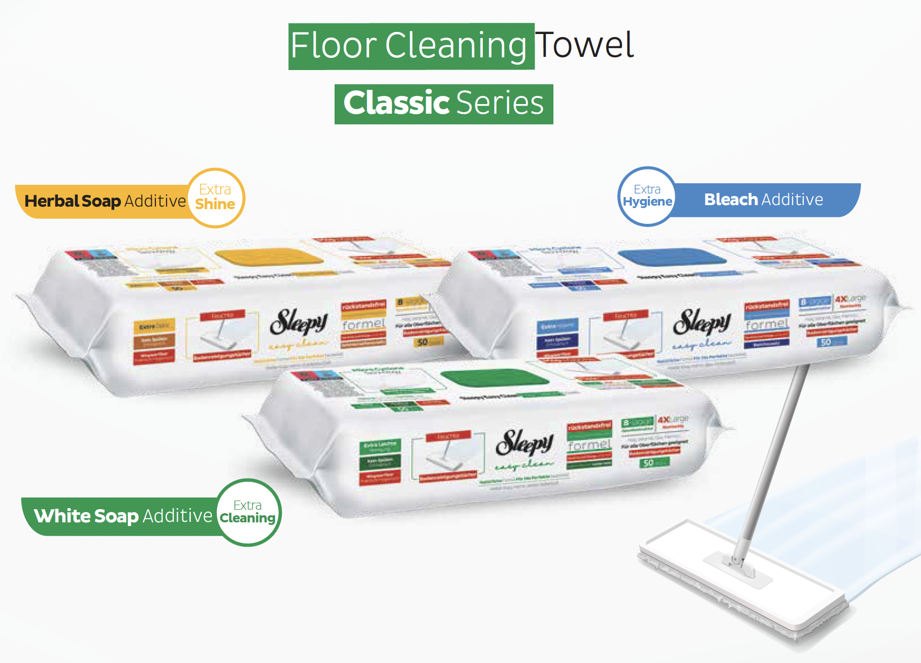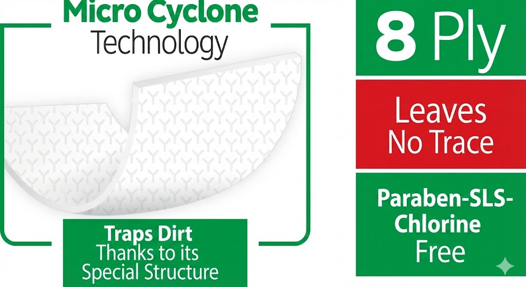 Sleepy Easy Clean Floor Cleaning Towel ; with its Micro Cyclone technology and 8-layer fabric structure, it traps dirt and dust inside. Its 4XLarge size, compatible with mops, provides effective cleaning and hygiene on all surfaces including ceramic, glass, wood, and marble.